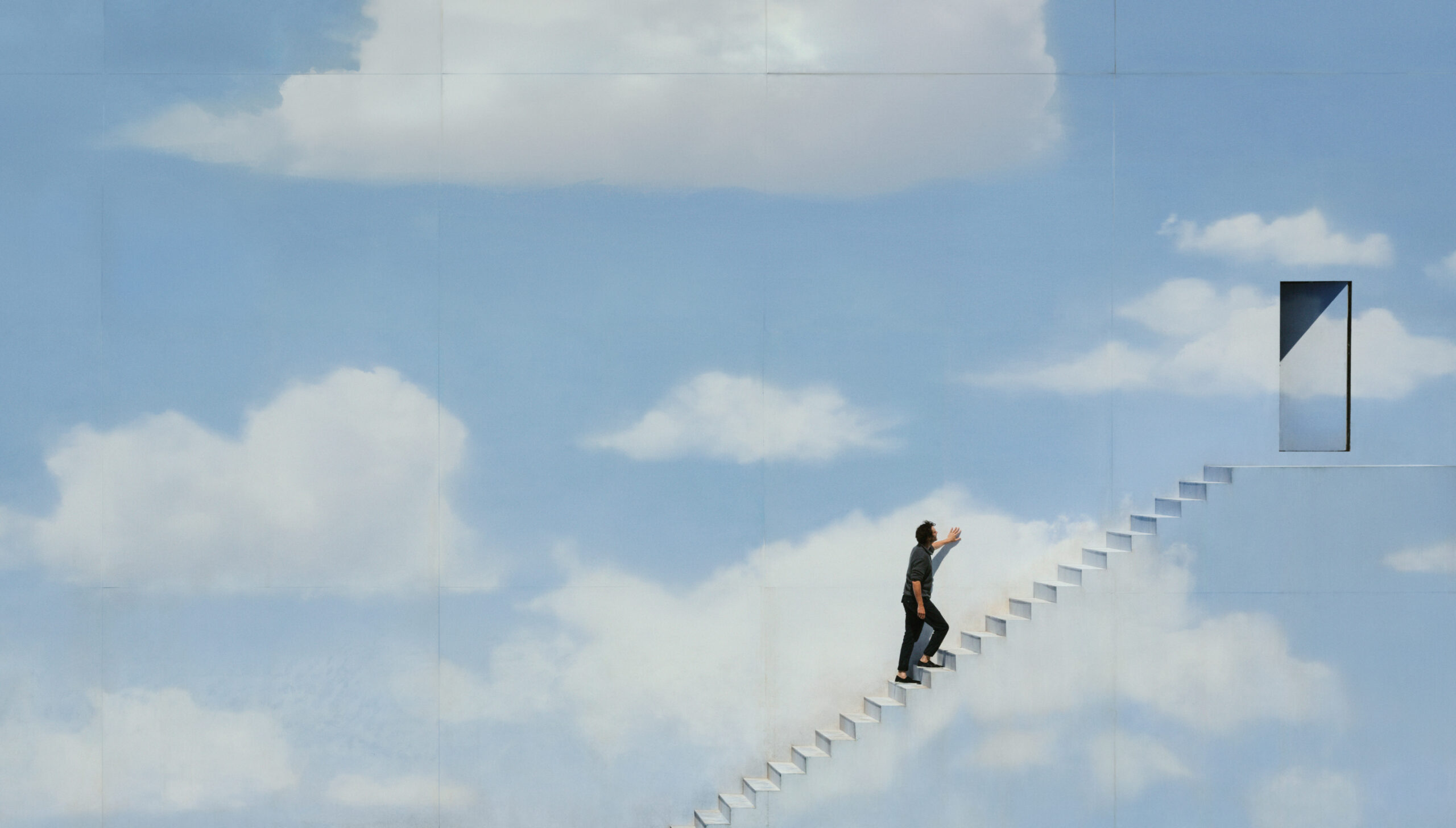 Así que volvimos a rodarla, pero con una mirada nueva. Volvimos a subir a un personaje en un barco que navega hacia el horizonte hasta que, de repente, choca contra él. Y, como en la película original, es entonces cuando se da cuenta de que el mundo en el que vive no es como él imaginaba. Todo es mentira. Con su mano acariciando un horizonte de pega, camina hacia una escaleras. Sube por ellas. Y cuando ha subido unos pocos peldaños, una puerta se abre para invitarle a salir del mundo artificial en el que ha estado viviendo para adentrarse en el mundo de +Orange, en el mundo que viene.