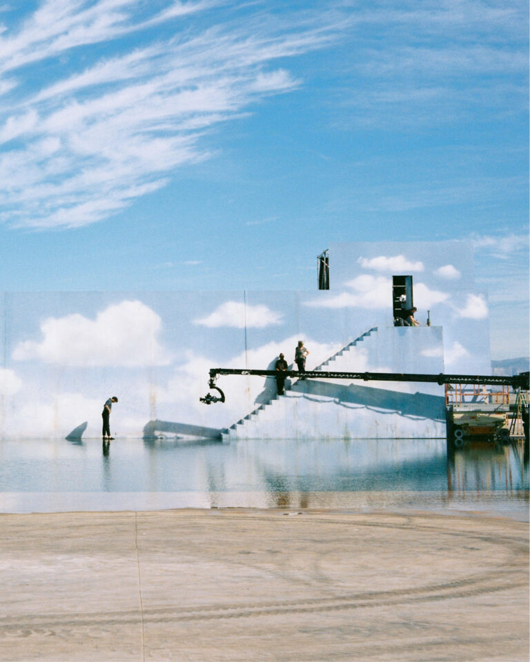 Así que volvimos a rodarla, pero con una mirada nueva. Volvimos a subir a un personaje en un barco que navega hacia el horizonte hasta que, de repente, choca contra él. Y, como en la película original, es entonces cuando se da cuenta de que el mundo en el que vive no es como él imaginaba. Todo es mentira. Con su mano acariciando un horizonte de pega, camina hacia una escaleras. Sube por ellas. Y cuando ha subido unos pocos peldaños, una puerta se abre para invitarle a salir del mundo artificial en el que ha estado viviendo para adentrarse en el mundo de +Orange, en el mundo que viene.